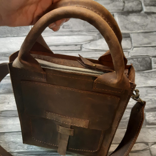 Кожаные сумки от Vattory - это стиль и практичность. Натуральная кожа и ручная работа делают каждую сумку уникальной! Данная модель сшита вручную из натуральной кожи премиум класса Crazy Horse. Эта кожа отличается высокой эластичностью, прочностью и плотностью. Благодаря особой технологии выделки Лицевая поверхность такой кожи имеет очень красивый и ярко выраженный эффект старения. В местах изгибов, заломов, частых прикосновений оттенок кожи становится более светлым, что придает шарм винтажности всему изделию.